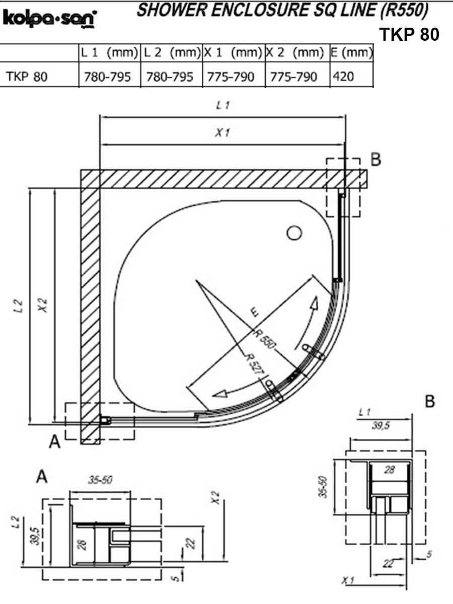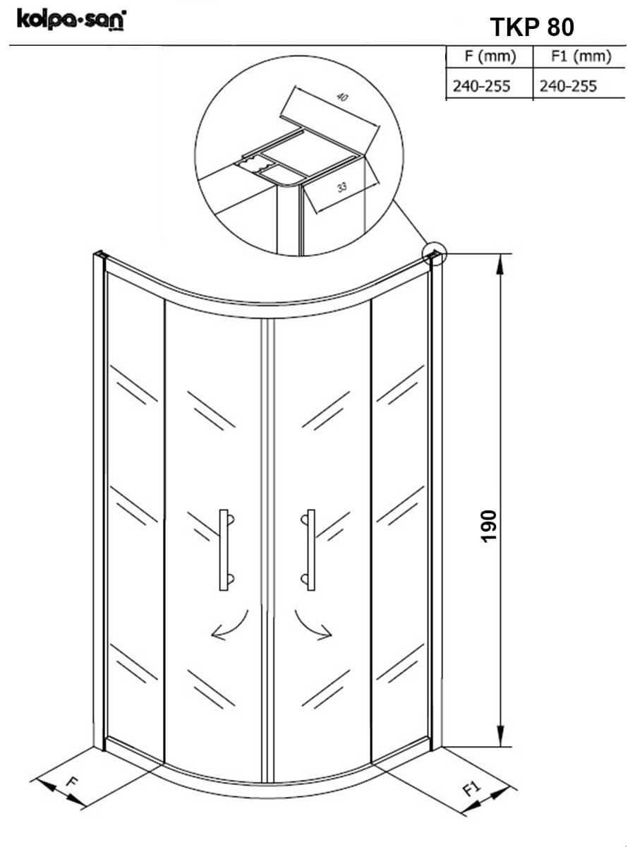 Kolpa San SQ LINE Chinchila R80 tuš kabina polukružna