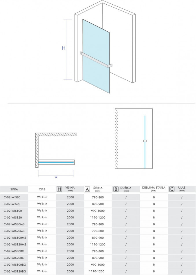 Walk-in COPEN MONTE SUPERIORE 800×2000 mat crni